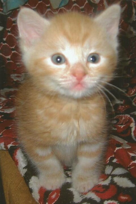Im Eingang und im Keller lebte eine Katze, immer so, wie ich das Haus verließ (7. Stock) und nicht flauschig, sondern absolut glatt. Sie ging hinunter und rieb sich an den Füßen, ich fütterte. Aber bald ist unsere schwarz-weiß-rote Plüschkatze verschwunden, die Enkelin hat erzählt, dass die Katze von der Freundin - der Kollegin am Ende der Fachschule - mitgenommen wurde. Später schickte ich ein Foto der bereits sehr gepflegten Katze, und ihre vier Kätzchen sind zwei Rothaarige, schwarz und weiß, alle absolut glatt, nicht flauschig. Eine Rothaarige wohnt bei uns. Da ist er auf dem Bild.